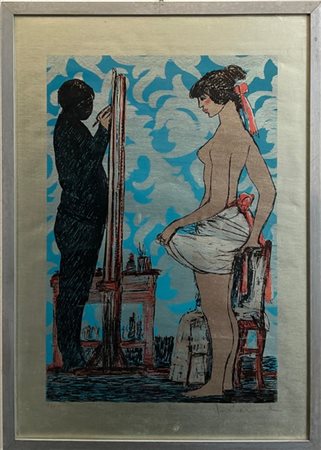 "Modella nell'Atelier" litografia a colori (cm 70x50) es. 97/100, firmata e numerata in basso a matita