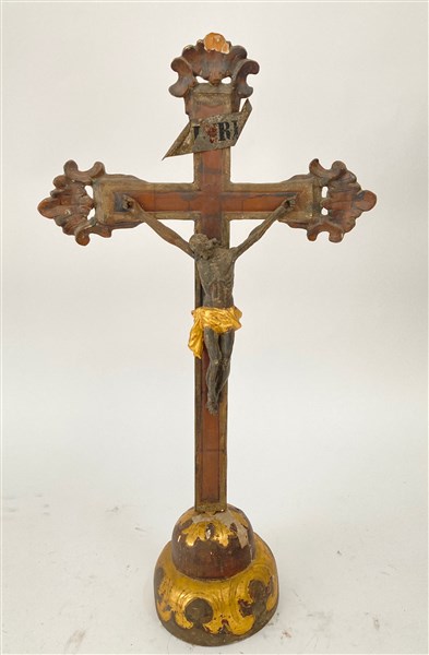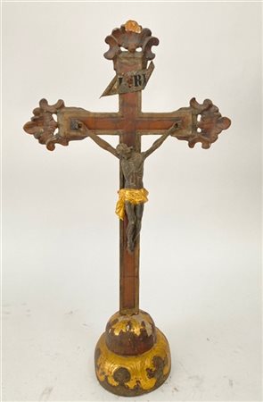 Arte del secolo XVIII. Cristo crocifisso, scultura in legno con puntali intagliati e traforati (h. cm 67) (difetti e mancanze)