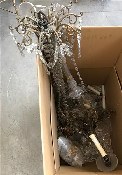 Lotto composto da due lampadari in metallo e vetro di epoche e fatture differenti (difetti e mancanze)