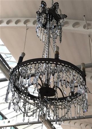 Lotto composto da due lampadari in metallo e vetro di epoche e fatture differen