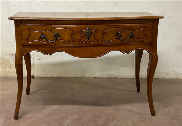 Tavolo a muro di forma mossa a un cassetto nella fascia, fronte e fianchi intag