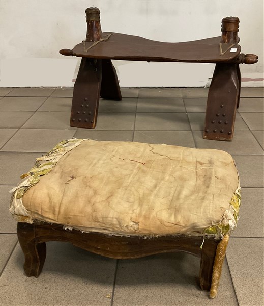 Lotto composto da una sella da cammello e un poggia piedi di epoche differenti