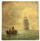 "Pescatori e veliero sullo sfondo" olio su cartone pressato (cm 25x23) firmato in basso a destra (difetti)