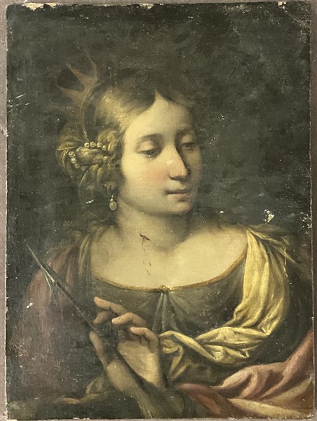 Scuola della fine del secolo XVII, "Sant'Orsola", olio su tela (cm 47x35)
