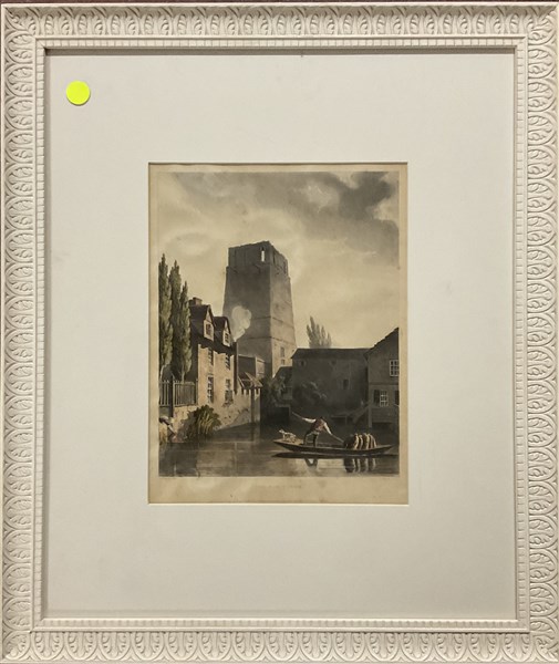 "The Old tower", incisione a colori datata marzo 1814 (cm 21x28) (difetti)