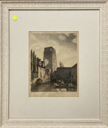 Bluck J. "The Old tower", incisione a colori datata marzo 1814 (cm 21x28) (difet
