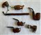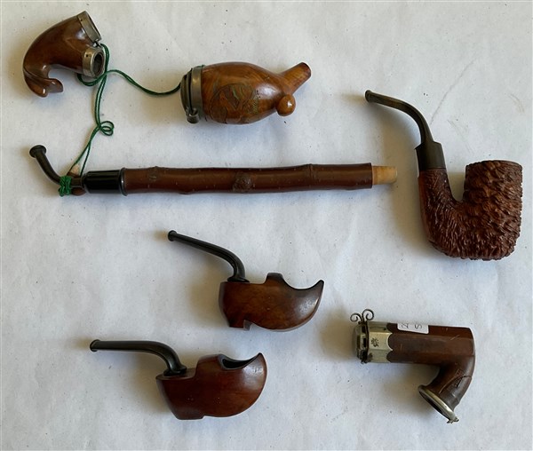Lotto composto da cinque pipe in legno intagliato e materiali differenti (difetti)