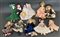 Cartone contenente dieci bambole da collezione di epoche differenti con volti e