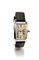 Cassa rettangolare incurvata con fondello chiuso da quattro viti, corona con zaffiro sfaccettato, vetro zaffiro. Quadrante avorio guilloche numeri romani radiali, datario a ore 6, lancette a spada blu, secondi al centro.Movimento a carica automatica. Cinturino in pelle originale con fibbia ad ardiglione in oro bianco 18 kt Cartier. Dim. 33x22