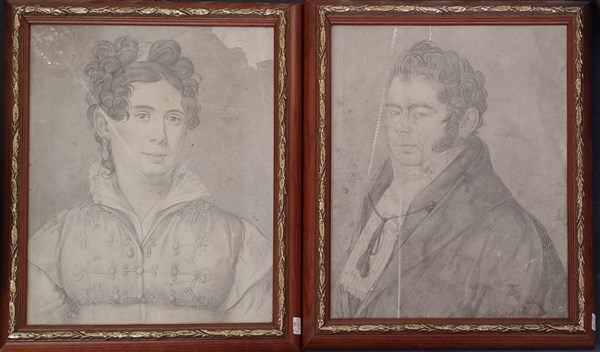 Artista di inizio secolo XIX, due disegni a matita su carta raffiguranti ritrat
