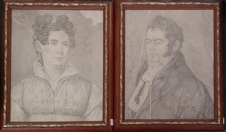 Artista di inizio secolo XIX, due disegni a matita su carta raffiguranti ritratti di dama e gentiluomo (cm29x24), in cornici