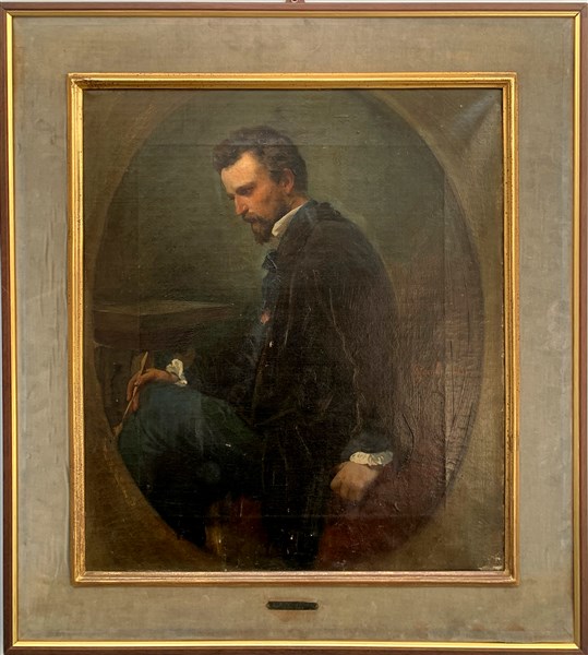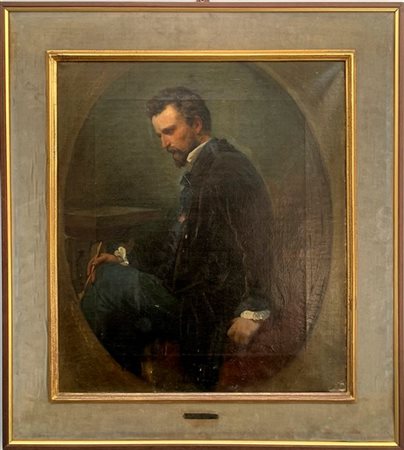 Enrico Gamba "Ritratto di pittore" olio su tela (cm 54x47) Firmato a destra. In