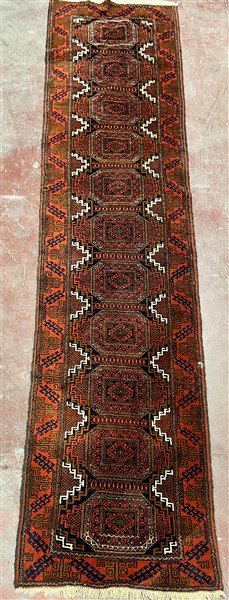 Tappeto passatoia Beluchistan, Persia, inizio secolo XX. Decoro con una fila di