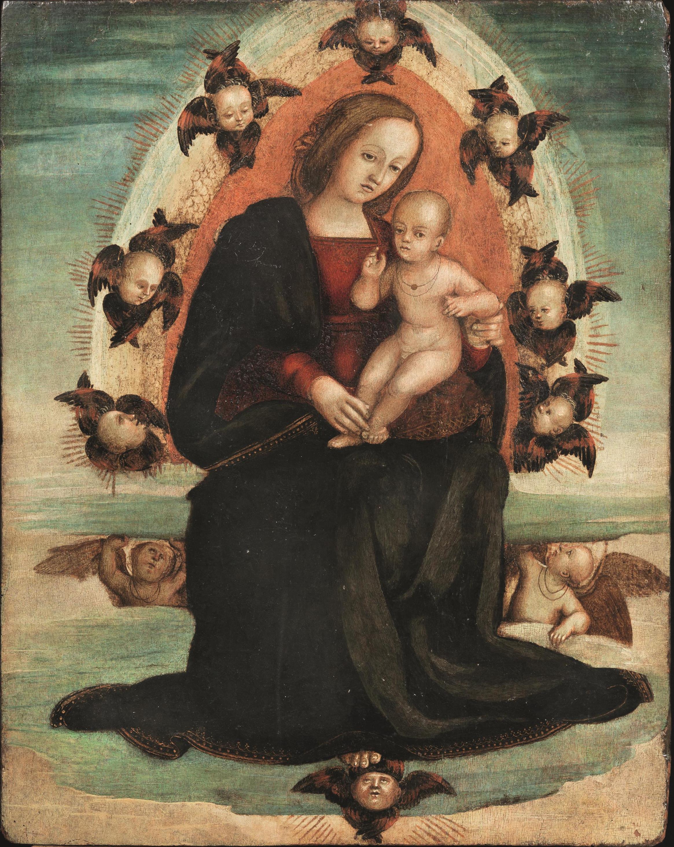 Scuola umbra, sec. XVIMADONNA CON BAMBINO E SERAFINIolio su tavola, cm 87x70,...
