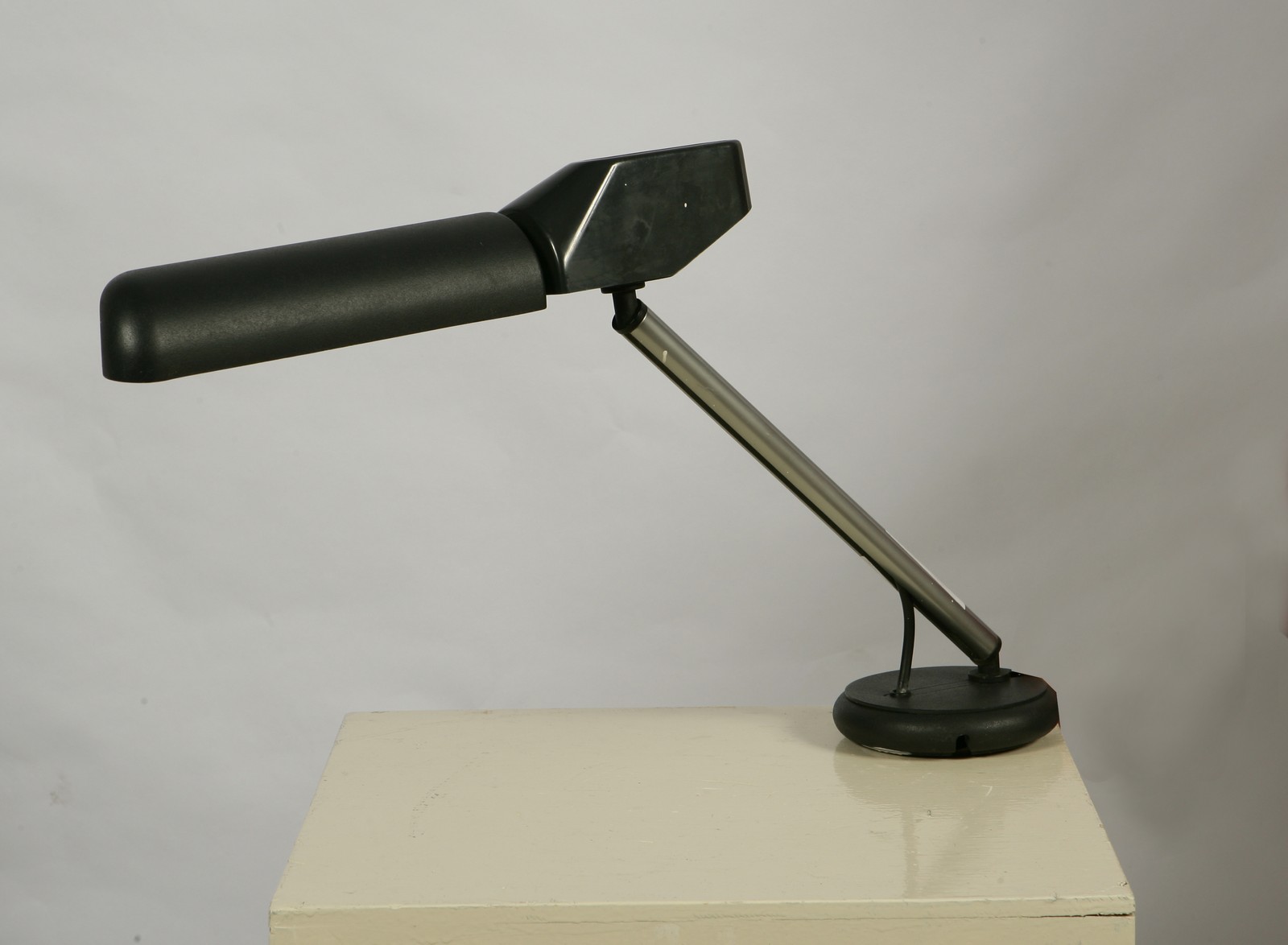 GECCHELIN BRUNO. Lampada da parete delle serie ' Bis ' a due luci orientabili per Arteluce. Wall lamp of the 'Bis' collection , with two directional lights for Arteluce. Black painted aluminum and steel . Acciaio e alluminio verniciato. Cm 36x60x12. 1985.