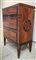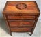 Comodino intarsiato in legni vari con fronte a due cassetti sotto uno a mezza a