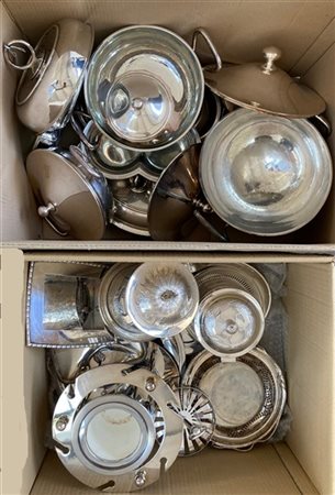 Lotto composto da due cartoni contenenti numerosi oggetti per la tavola di vario uso in metallo (difetti)