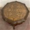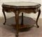 Tavolino da salotto con piano in radica in legno intagliato di forma sagomata,