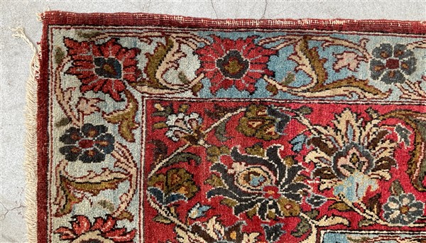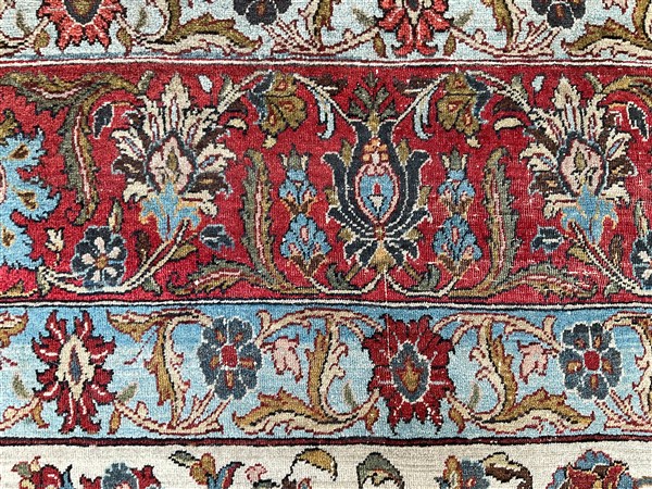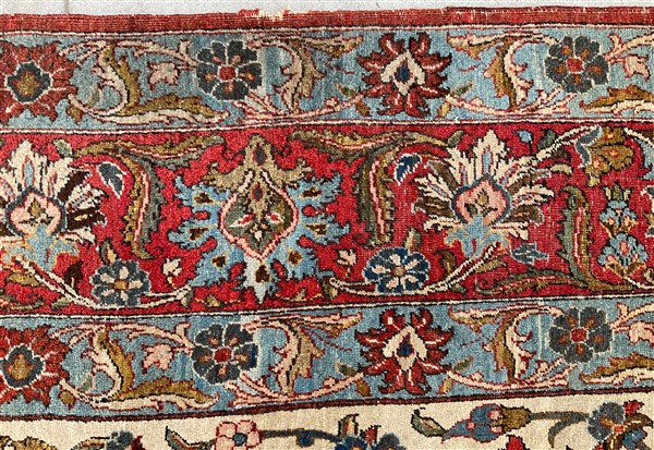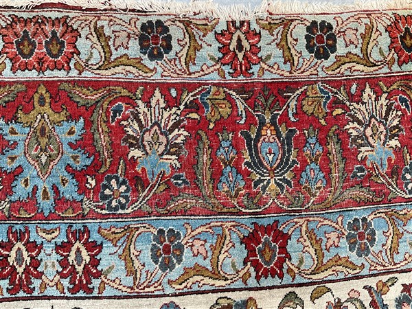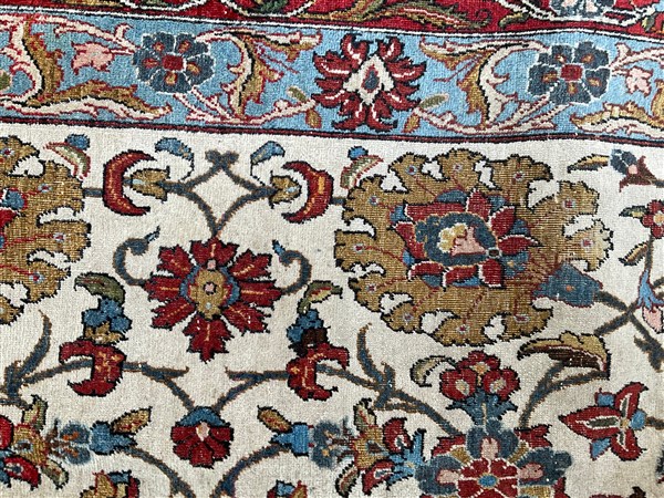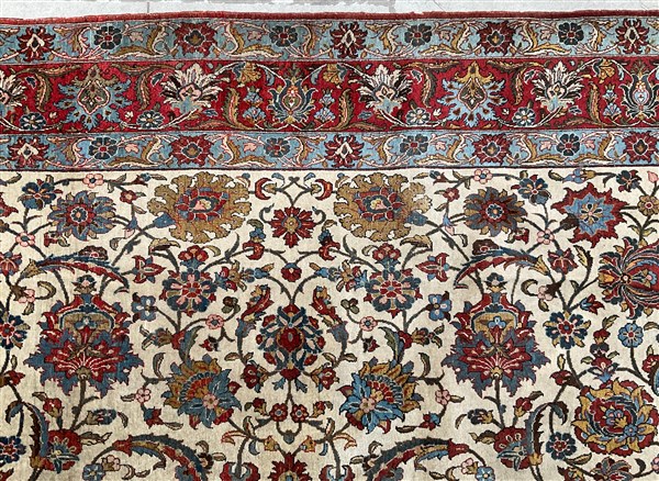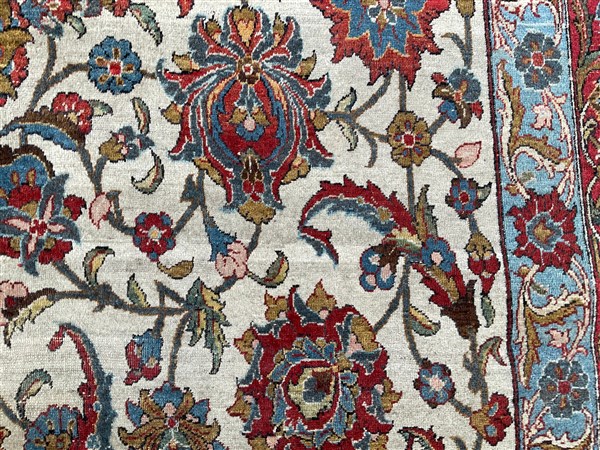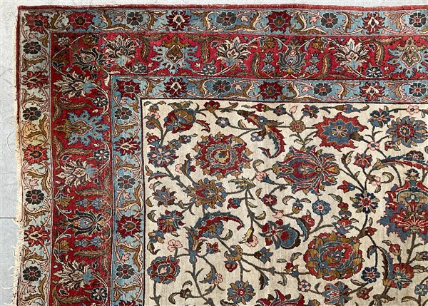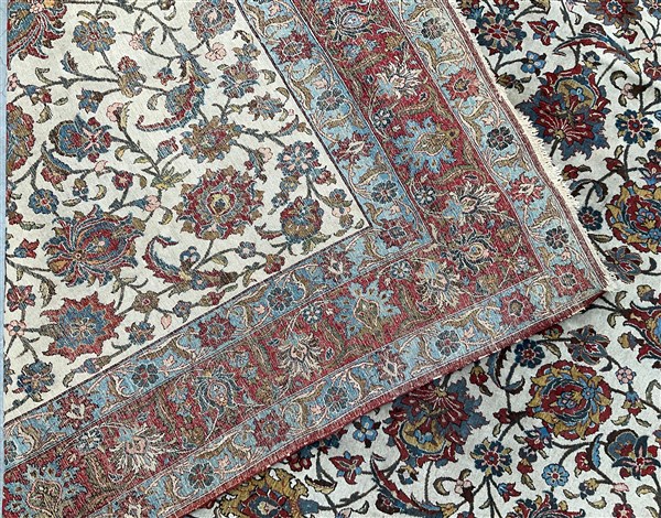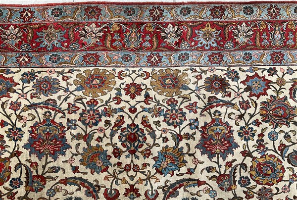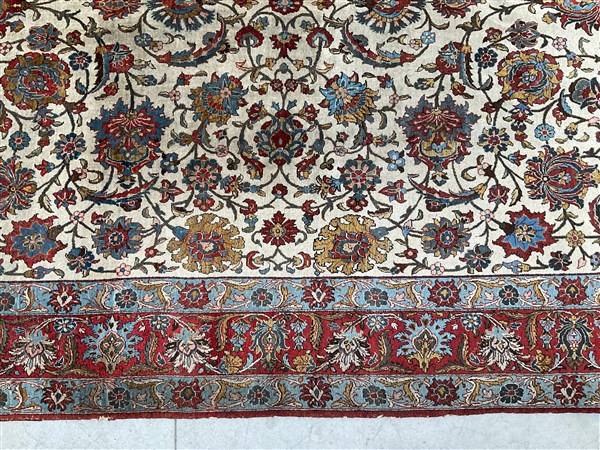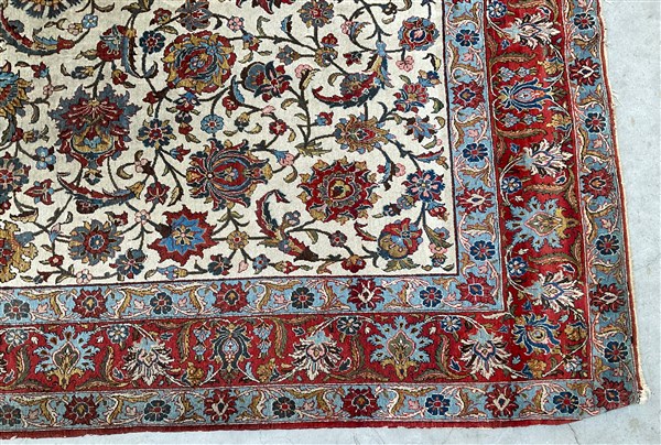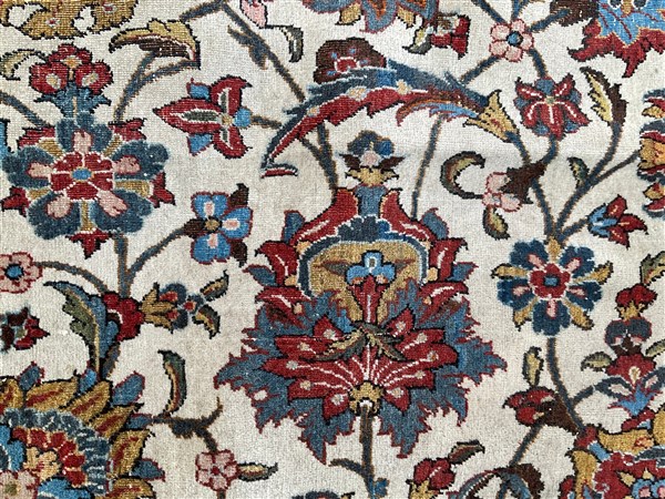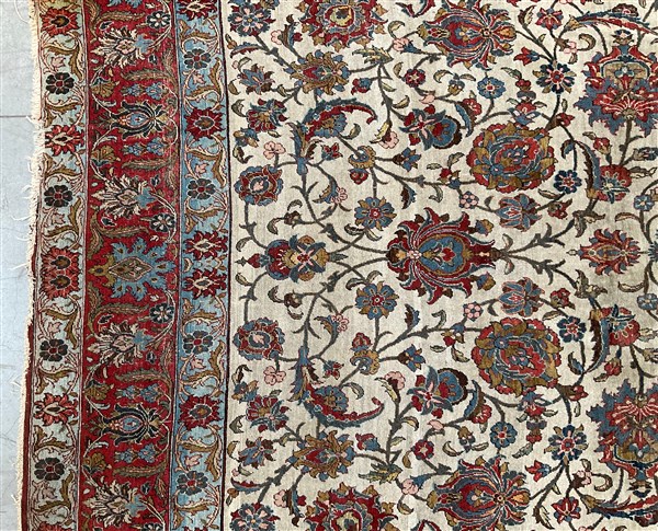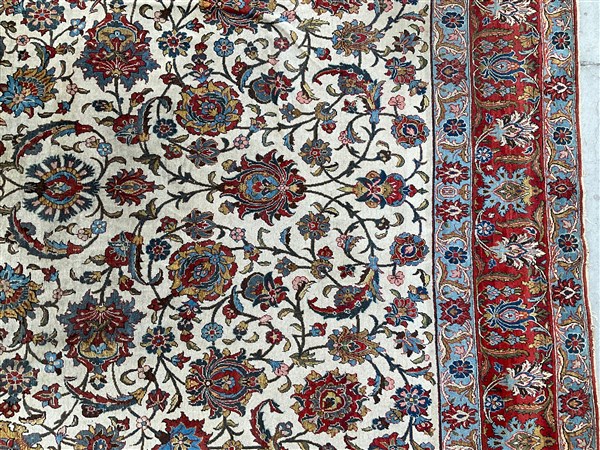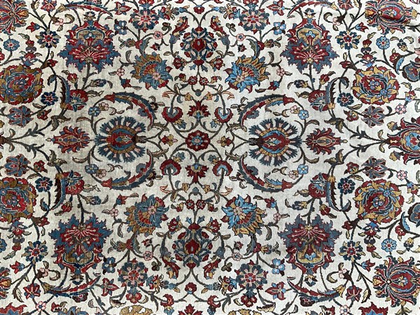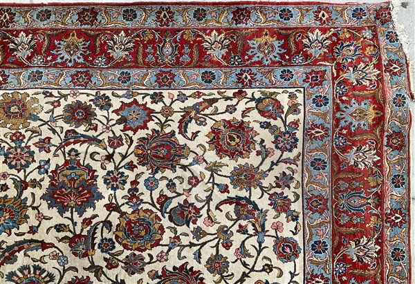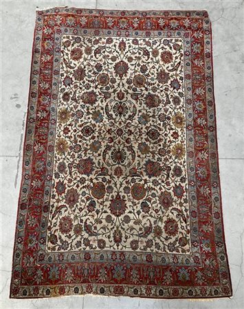 Tappeto Ispahan, Persia, secolo XX. Decoro all over floreale su fondo bianco (cm 345 x 220) (difetti)