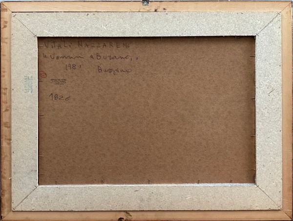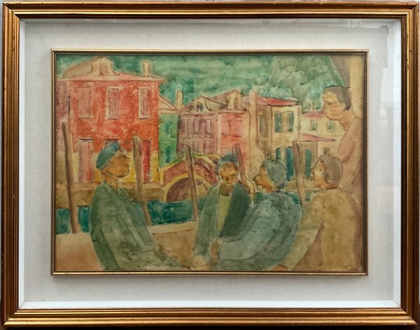 Nazzareno Vitali Uomini a Burano"1981, tecnica mista su carta applicata su compe