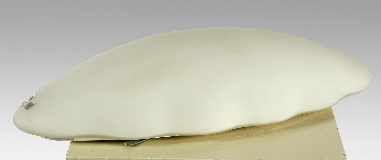 TOSO RENATO (N. 1940). Lampada a plafone modello Nubia. Nubia ceilling lamp. Vetro soffiato bianco satinato. Cm 63x14x25. Prodotta da Leucos. Produced by Leucos. 1980.