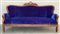 Divano a tre posti di forma mossa in legno intagliato rivestito in velluto, sec