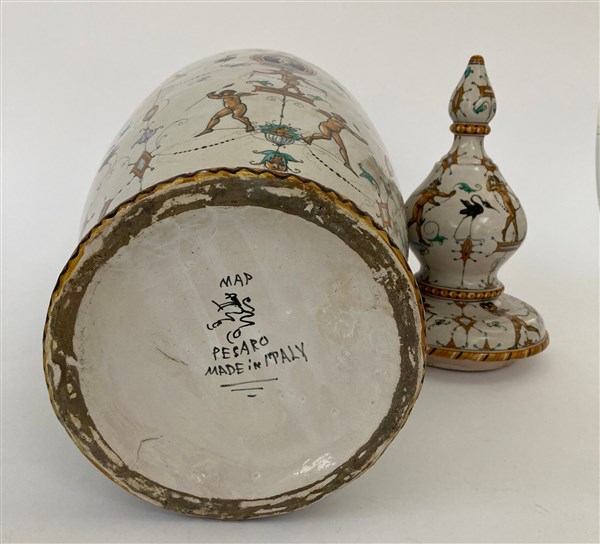 Maiolica Artistica Pesarese Vaso a balaustro con coperchio. Anni '50. Ceramica p