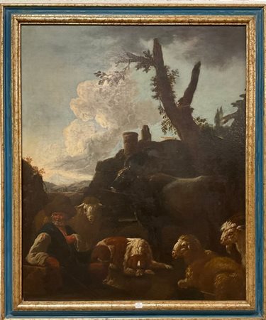 Scuola romana del XVII secolo, Pastore con armenti, olio su tela, (cm 88,5x73)