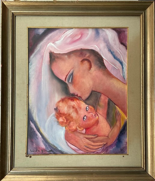 M. Giometti M. Giometti, "Madonna con Bambino" tecnica mista su tela (cm 50x40)