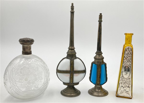 Lotto composto da quattro ampolle portaprofumo di diverse forme e decori (difet