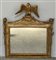 Piccola specchiera in legno intagliato e dorato con cimasa sormontata da pellic
