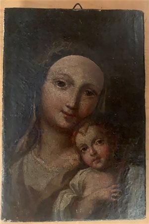 Ignoto "Madonna con Bambino" antico dipinto ad olio su tela (cm 23,5x16)