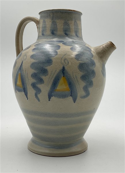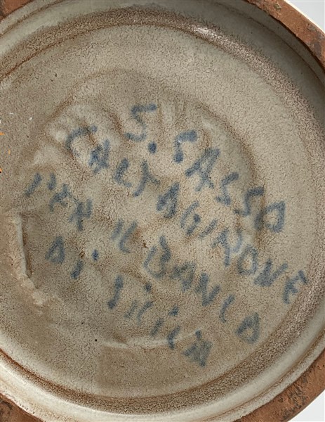 Manifattura di Caltagirone, secolo XX. Orciolo in maiolica, iscritto alla base
