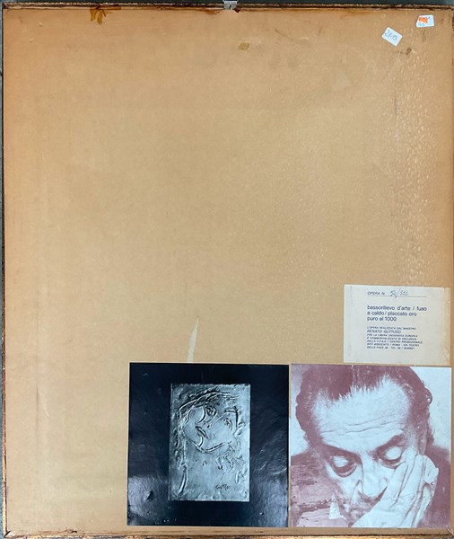 Bassorilievo in metallo dorato raffigurante opera di Guttuso (cm 32X21), es. 50