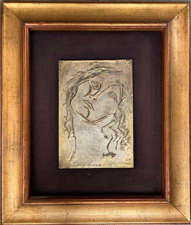 Bassorilievo in metallo dorato raffigurante opera di Guttuso (cm 32X21), es. 50/333, in cornice