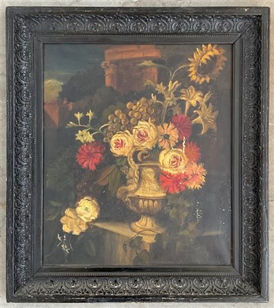 Ignoto - dipinto raffigurante vaso di fiori, olio su tela (cm 50x40 c.) in cornice