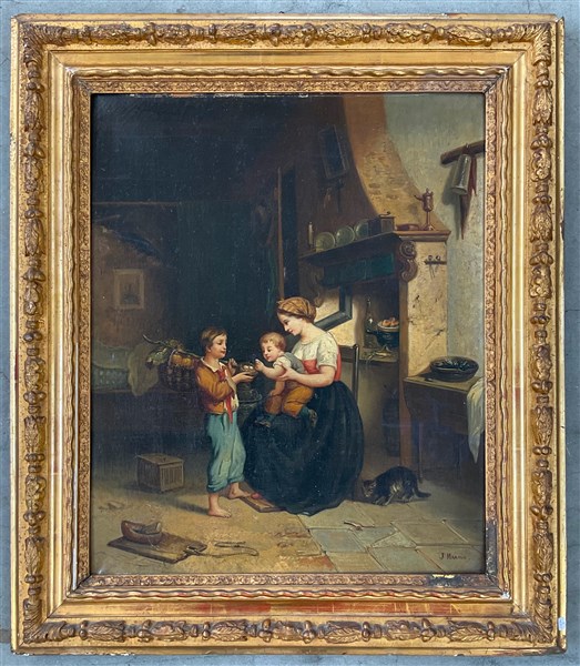 J. Martin "Scena d'interno" olio su tela (cm 65x54) Firmato in basso a destra. I