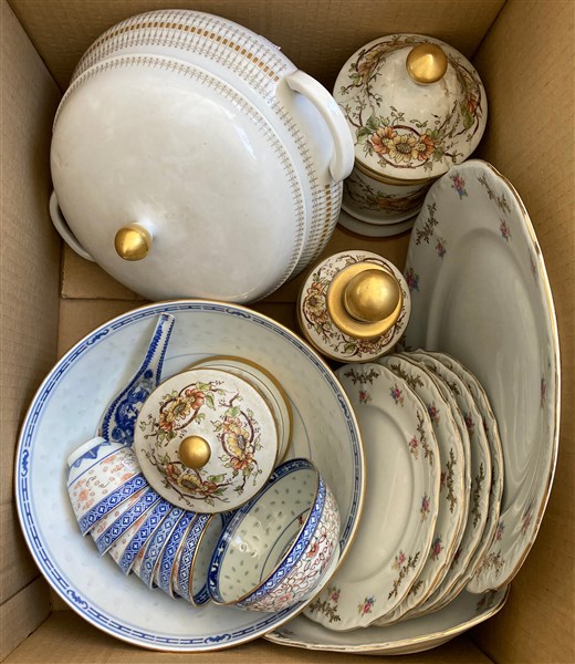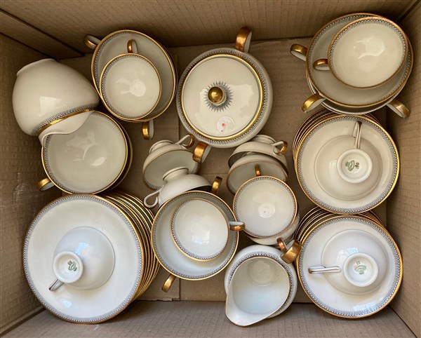 Manifatture differenti, lotto di due cartoni contenenti parti di servizi per la