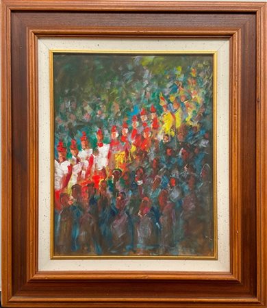 Ignoto "Processione di cardinali" tecnica mista su carta (cm 49x39) In cornice