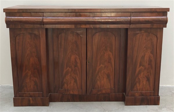 Sideboard di forma squadrata a tre cassetti sottopiano e quattro ante. Inghilerra, fine sec XIX (difetti)