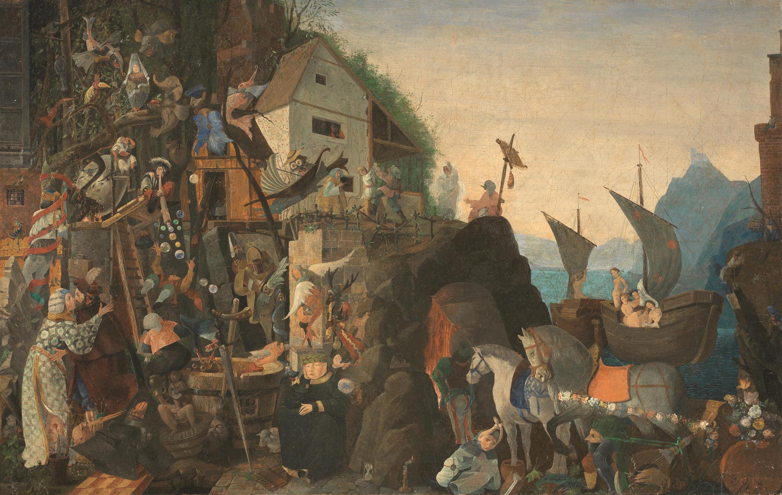 Scuola del sec. XXALLEGORIA FANTASTICAolio su tela, cm 48,5x76,5, senza cornice