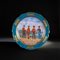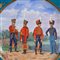 Piatto in porcellana russa, seconda metà del XIX secolo Parete celeste con sottile e largo bordo in oro, emblemi bellici dipinti in oro. Nel piatto sono rappresentati quattro soldati in divisa d'epoca. Dimensioni complessive 4,3x35,5x35,5 cm., presenti difetti