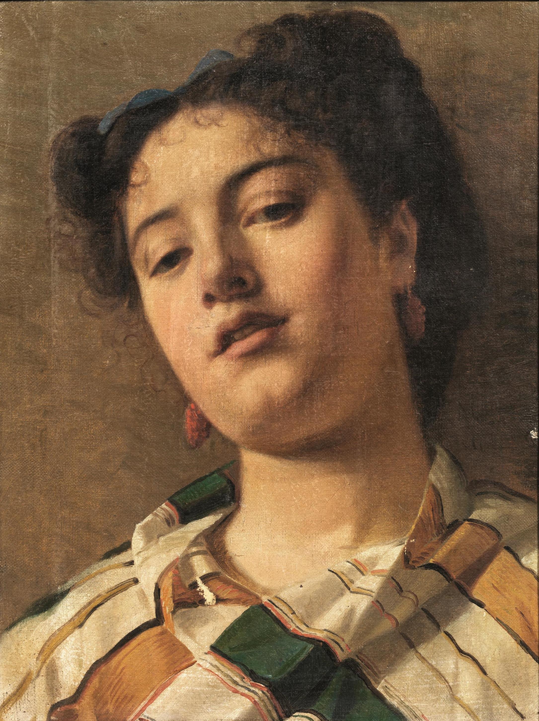 (Livorno 1833 - Firenze 1893)RITRATTO FEMMINILE CON ORECCHINI DI CORALLO