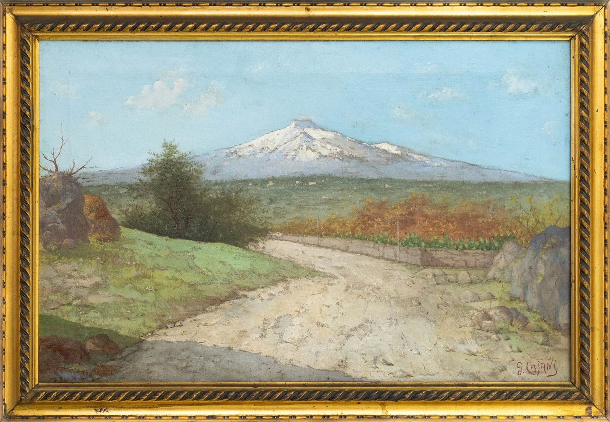 Cm42X64,5, in cornice cm 50x73 Paesaggio con Etna Dipinto ad olio su tela Firmato in basso a destra G. Cajani
