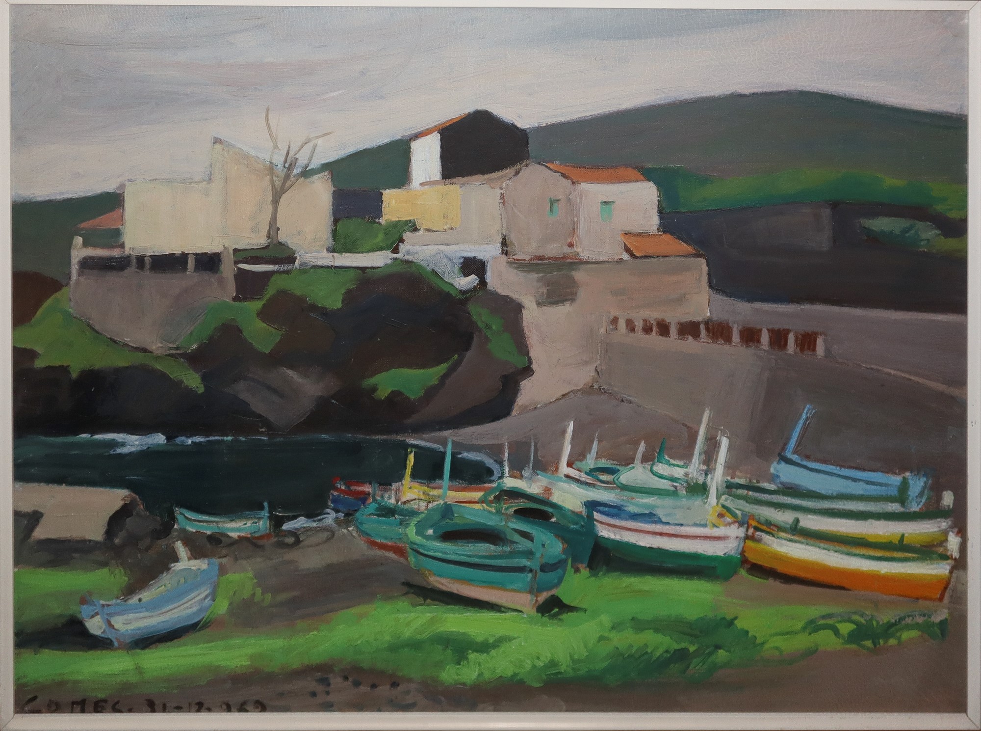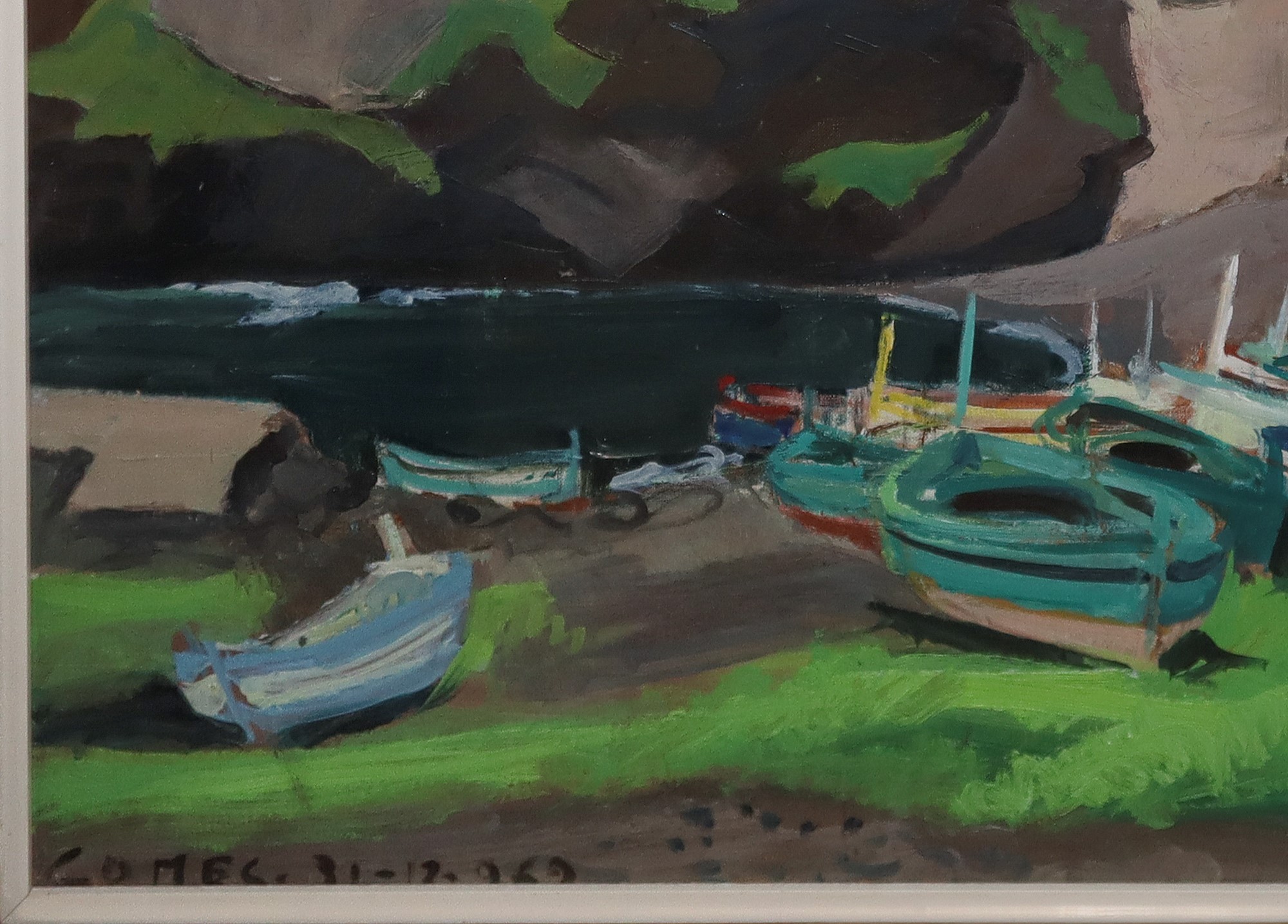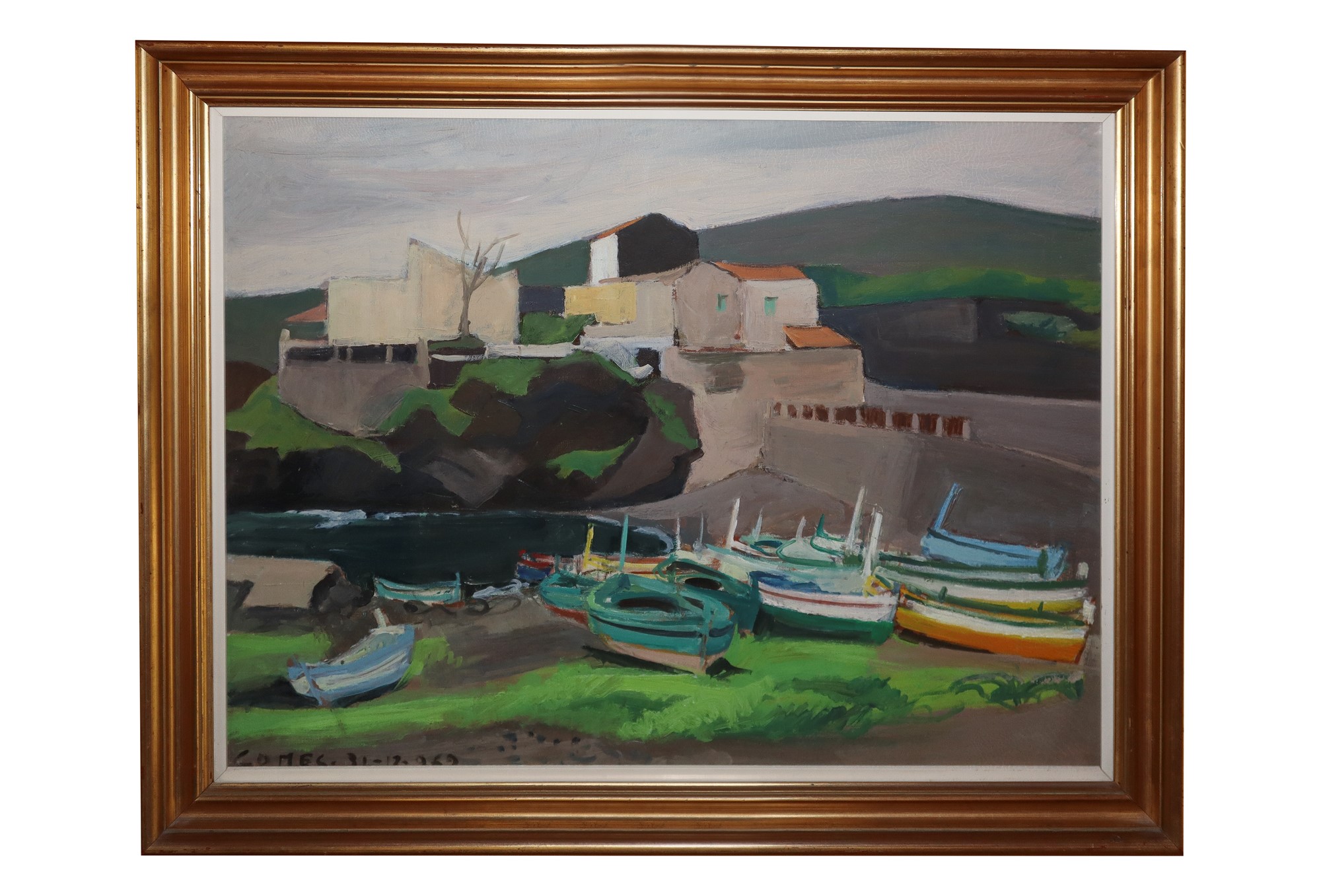 cm 60 x cm 80, in cornice cm 72 x cm 92 Barche a secco Olio su tela Firmato in alto a sinistra e datato 31/12/69.