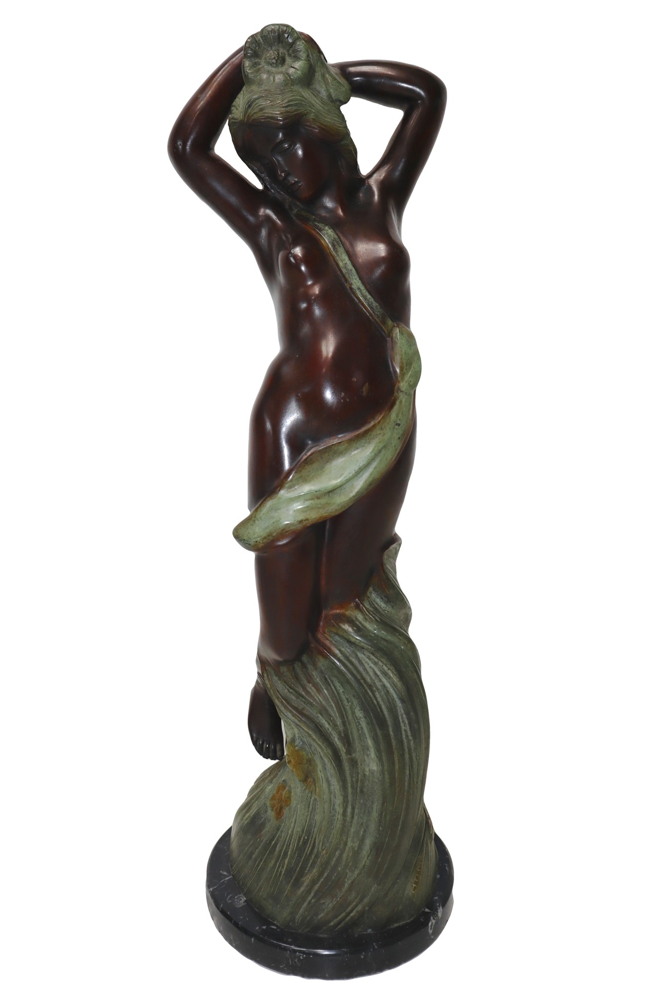 H cm 79 Donna con fiori, stile liberty Bronzo con base in marmo