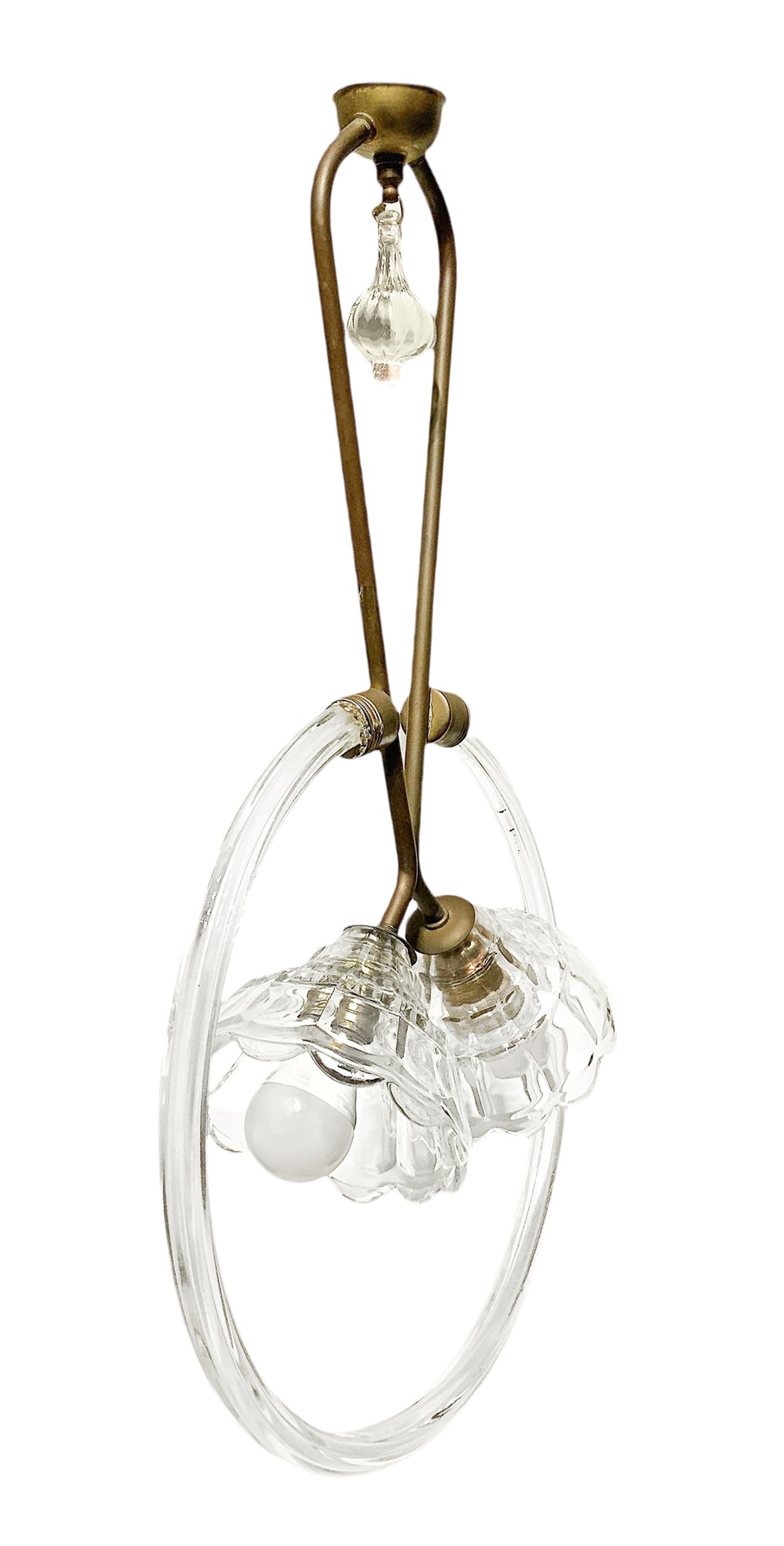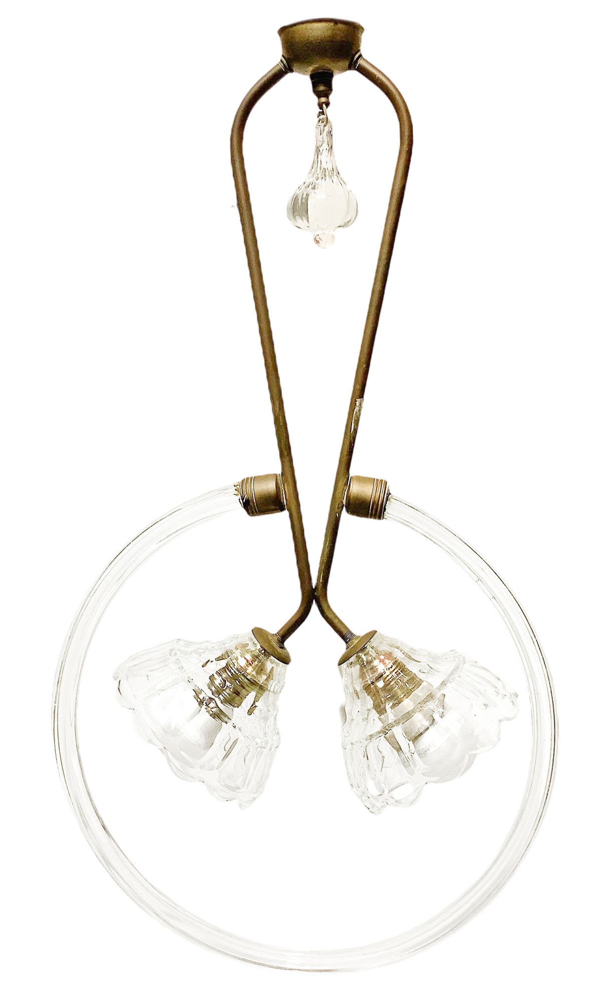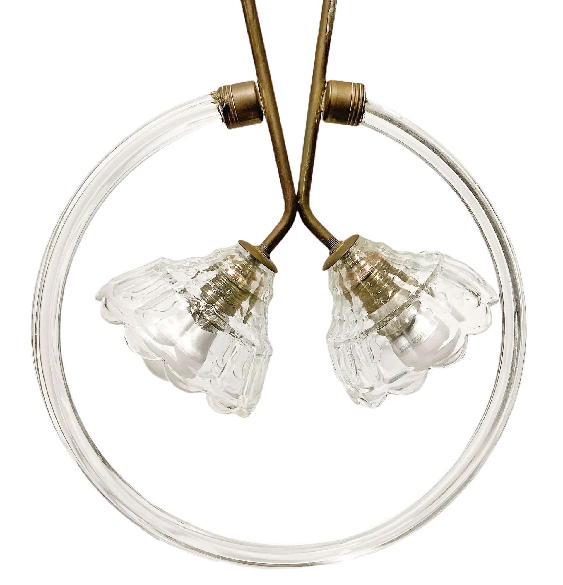 H cm 60x34 Lampadario Decò, a due luci in metallo e vetro