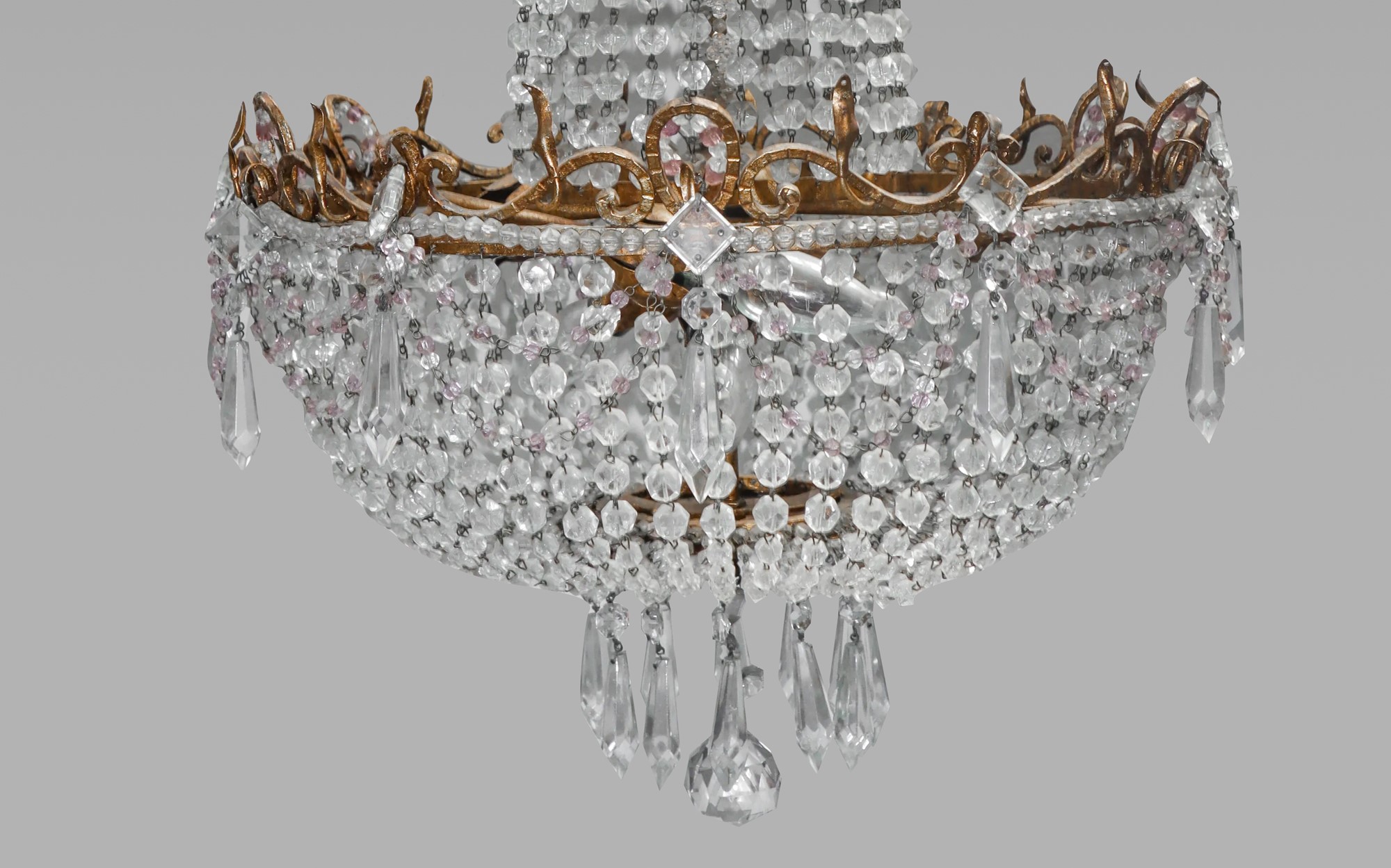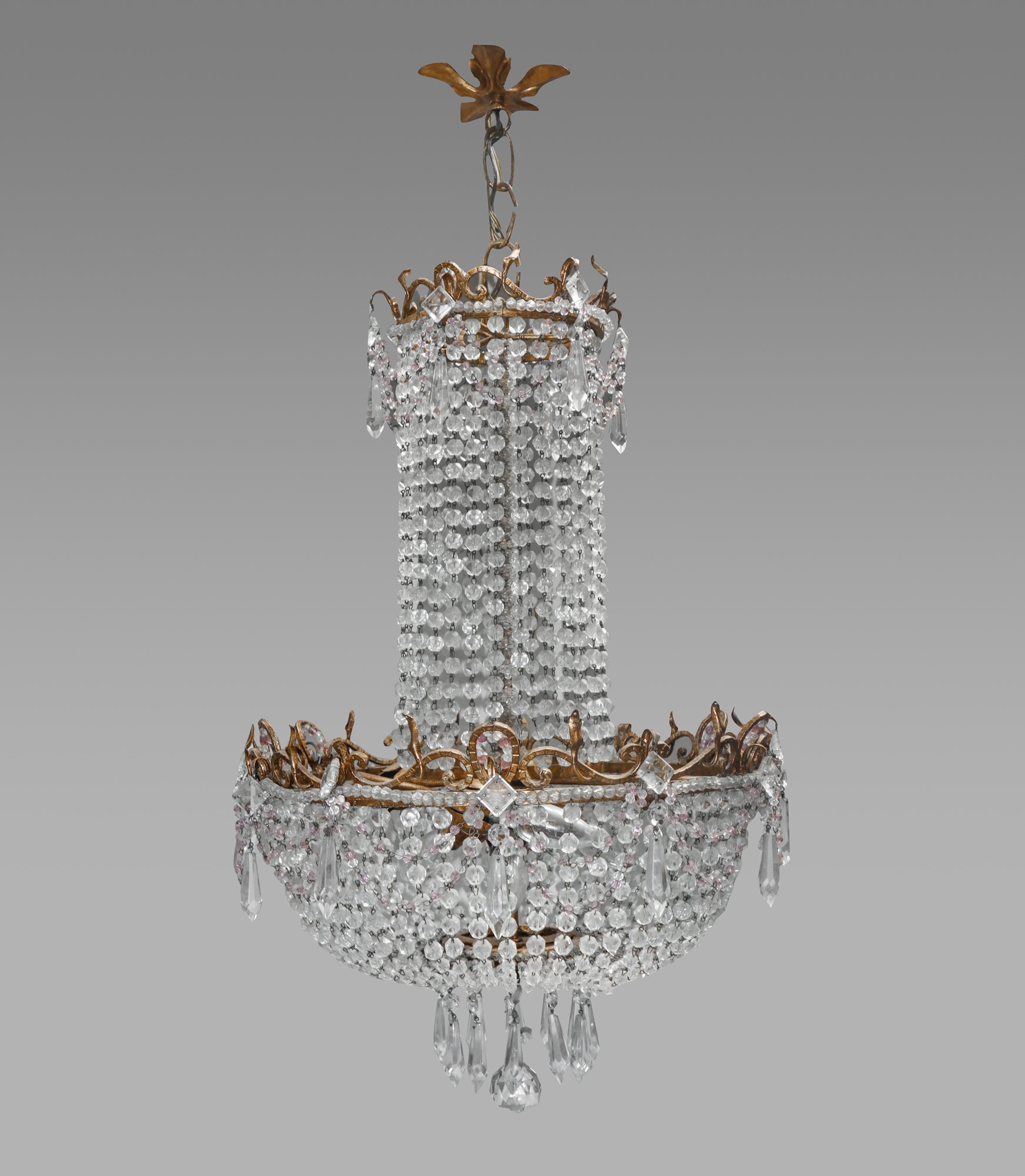 Lampadario con struttura in ottone dorato, Early 20th Century