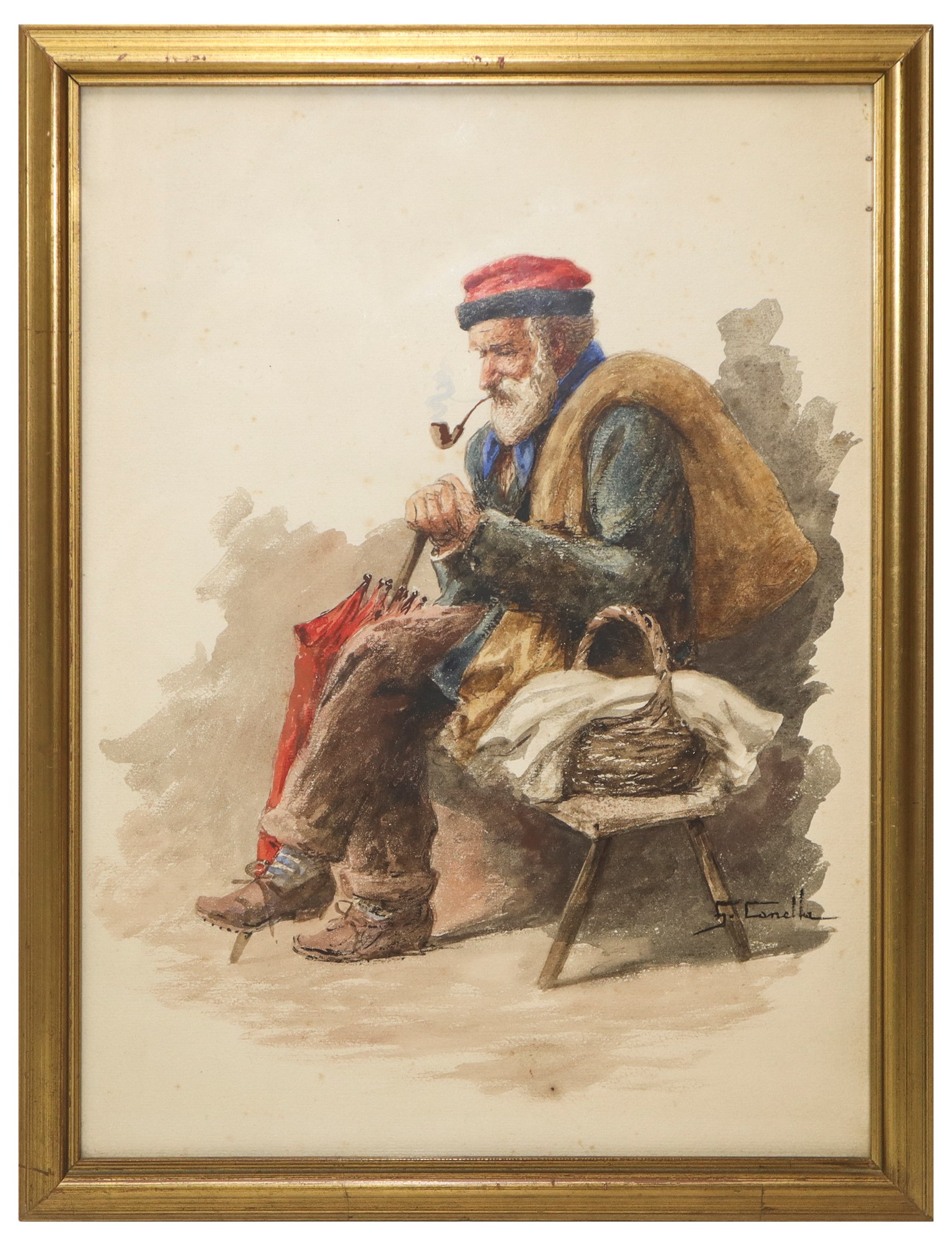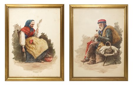 Cm 43x33 Coppia di dipinti raffiguranti Anziani Acquarello su carta Firmati in basso.