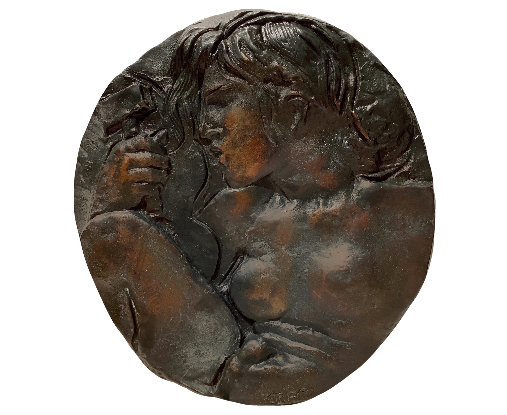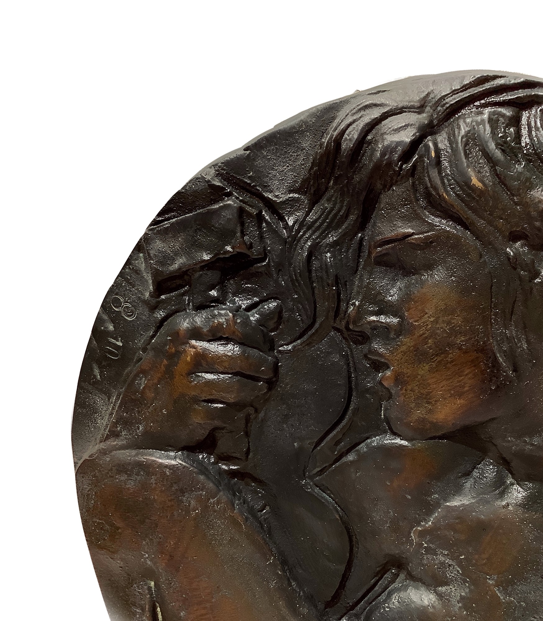Diametro cm28 Nudo di donna Bronzo Firmato. Esemplare 8 su 10. Da ritenere opera unica. Il riconoscimento internazionale per l’artista si ebbe alla Biennale di Venezia del 1956 con il Gran Premio per la Scultura, i suoi disegni e le sue sculture rispecchiano un ideale di bellezza che attraverso forme tornite, allungate e ben fornite si riportano ad un manierismo arcaico della Scuola di Fontainebleau. Suo punto di riferimento può considerarsi lo scultore Pericle Fazzini.Nella sua grafica, perfetta sintesi formale, netta, elegante e decisa ritroviamo l’essenza di tutto ciò che viene realizzato nelle forme plastiche, piene del bronzo, il corpo della donna costituisce la sua costante ispirazione, in tutte le sue figurazioni.La sua sapienza creativa, comunque si applica a numerose altre opere, quali il monumento a Pinocchio a Collodi, le porte del Duomo di Orvieto, e i Bassorilievi per la chiesa di S.G. Battista a Campi Bisanzio. Presente in numerosi musei: Tate Gallery – Londra; Hermitage – San Pietroburgo; Museo Puskin – Mosca; Hakone Open-Air Museum- Giappone; Musei Vaticani – Roma.